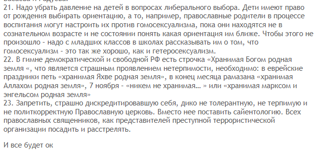 Вы как хотите, но я буду в посольство США писать заявы что бывший помощник депутата из РФ, незаконно пересёк границу США. Найду его высказывания про геев, негров, США, президентов США, и вставлю фотку в кепке z Будет забавно если его отловят и департируют)