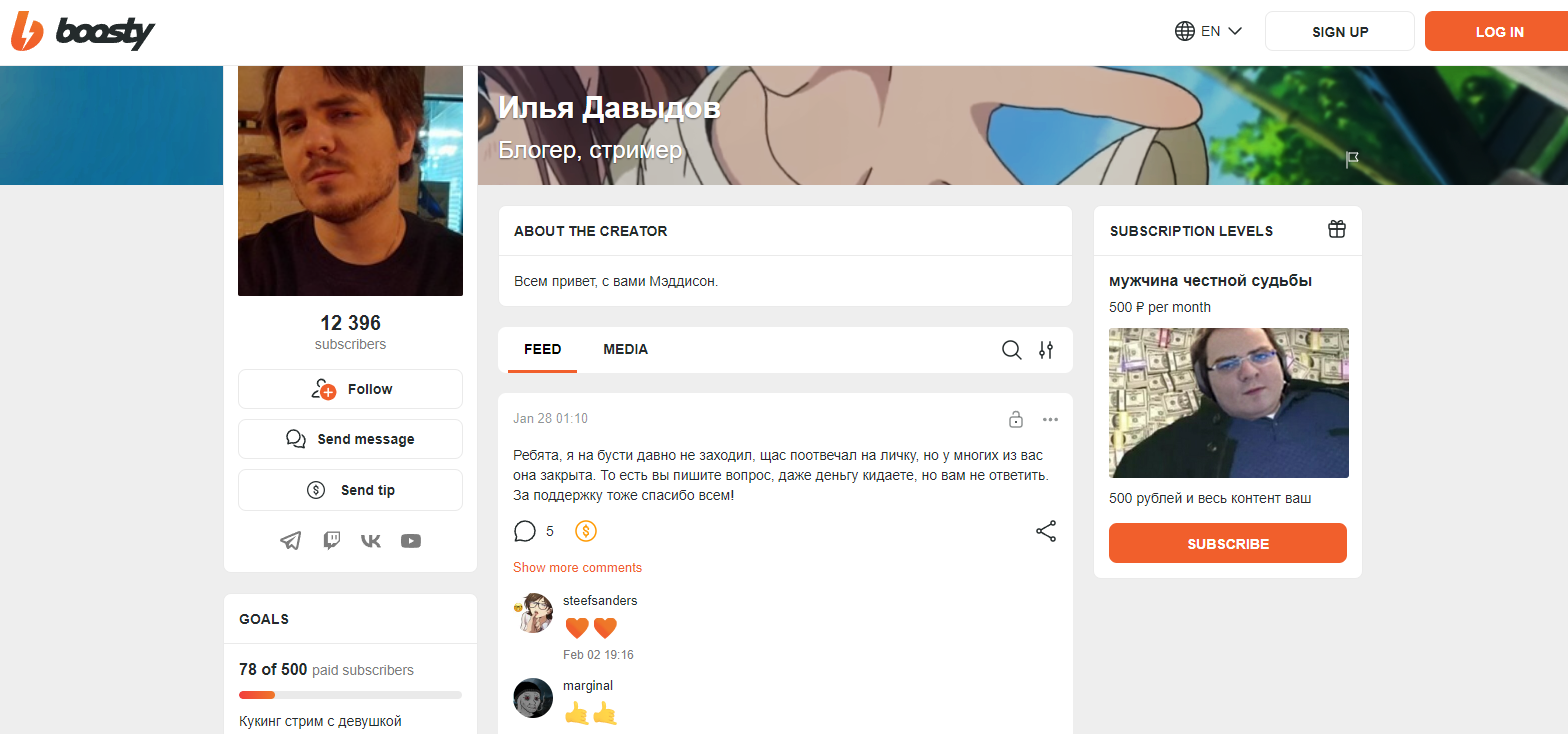 >>833765 Он как бы не ожидая никакой реакции написал. Он блоггер ебучий, появилась мысль - высрал ее на какой-нибудь платформе. Ну вот 80к рыл почитало про то как он заебался стримить. Вот и все. Комменты закрыты, так что ни поддержки ни обвинений он уже не ждет.