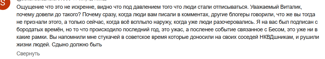 Единственное, что Виталик из этой истории положительное получил - это донаты на стриме и комменты от ядерной подпивасной ЦА "молодец мужык признал ошибку".