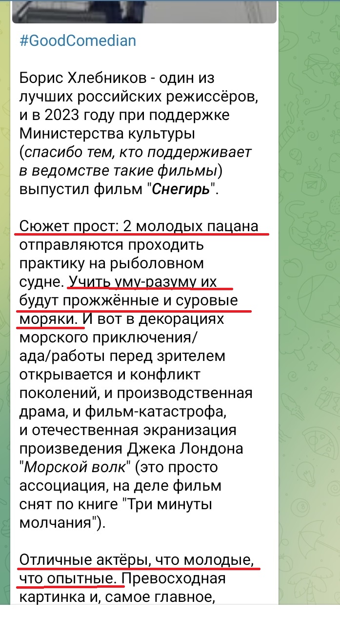 >>963503 Любовник-молодуха попросил Женю пропиарить его сирик, в котором любовник снимался. >>963924 >Раньше так долгожданные были обзоры его, теперь же их много Молодой любовник снова подсадил Женю на кокс >>963927 >которые по качеству уже реальное кино почти напоминают Гейкончина снимает говнодокументалки в виде обзоров. Быдлу формат нравится. Те же документалки от нетфликса про всякую хуйню хавают за обе щеки, размазывая кал по губам. Так что технически Кончаловский уже снял несколько фильмов, пусть и документальных.