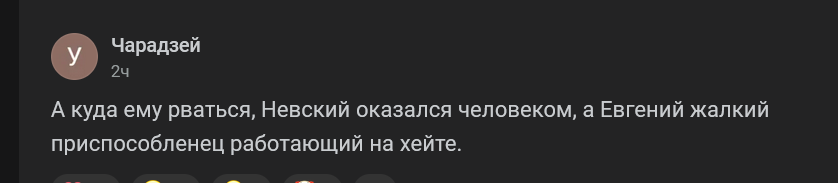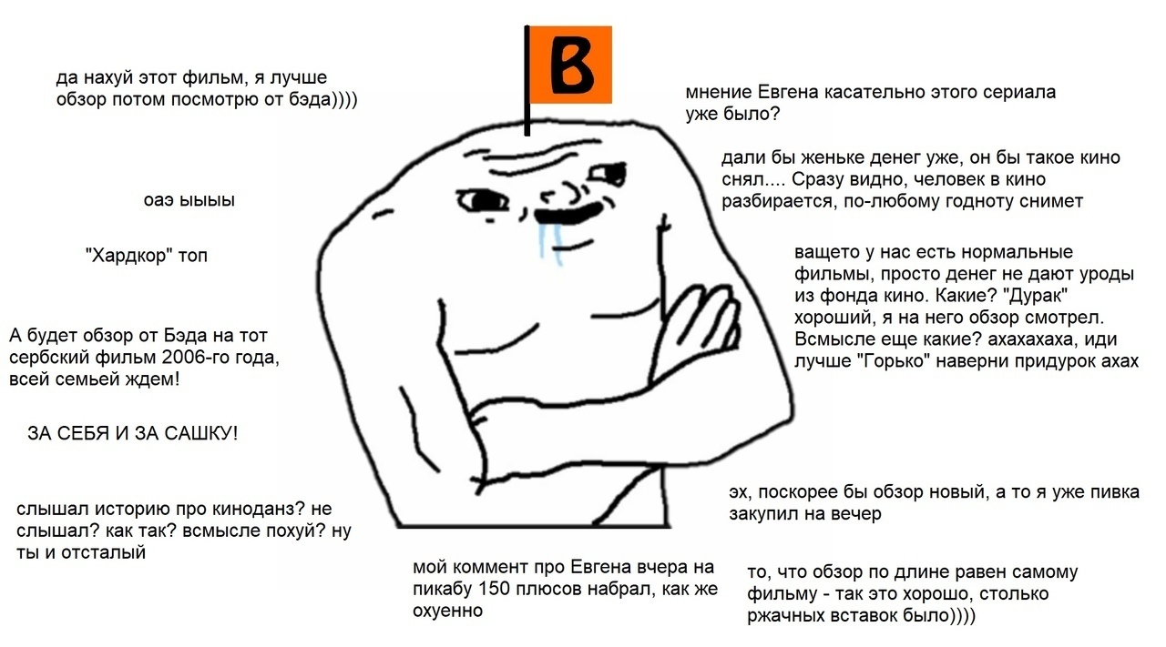 Предлагаю анонам разобрать типажи самого Жени из его обзоров. Типажи конины: -Молодой нормальный Бэд - первые обзоры, сделанные на коленке, без вложений, ради фана, лойсов и приятных коментов. Закончились с выходом обзора на кено Михалкова; -Переигрыватель говноквн из нулевых, калошоу с стс из нулевых-десятых(33 квадратных метра, осторожно модерн, хорошие шутки, даёшь молодежь), дерьмопедерач с тнт нулевых(кумеди клюб, наша раша); -Бескорыстный, простой, славный молодой рубаха-парень из обычного народа, бессеребреник, альтруист, правильный мальчик, говорящий правильные слова, честный гражданин, живущий по правде; -Советский патриот-правдоруб; -Последний голос здравого смысла. Когда надо немного отмыться от образа советского парня, Женя вставляет кадры из бумерских пиндосских фильмов аля Терминатор или зовёт Вэна Даркхолма); -Последний настоящий заступник за простой народ; -Высокодуховный моралист-политрук; -Небыдло илитарной культуры. Когда надо что-то противопоставить обращению создателей фильма к простым народным проблемам; -Поставщик приятной ностальгии. Вставки кадров из старой совкохроники/совкофильмов, приглашение старых забытых мамонтов/актёров/ведущих; -Модно-молодёжный креативщик. Воровство и переигрывание мемов и кломентов к ним с пикабу/ютуба