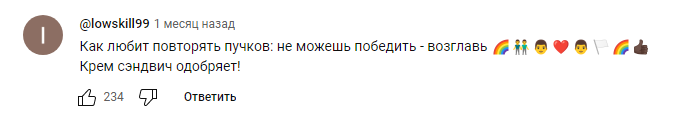 Вот сразу видно совка, ищущего предателя в партии. Только совки не разделяют частную и общественную жизнь. Только совкам с их тоталитарным мышлением нужно каждую дырку у человека обнюхать, чтобы увериться в его благонадёжности. А Жека обычная медиасоска, самый убежденный сторонник и пропагандист рынка и Запада - создал образ и эксплуатирует ностальгию. Nothing personal, just buisness. Это даблкек какой-то - не отделять образ блогера в ютубе, говорящего по сценарию и реального человека любящего потискать молодых азиатов. Может, ему еще предъявить, что он неразрешенное КГБ кино котирует? А не желание выносить на общественное обсуждение частную жизнь вполне естественное, что у здоровых людей с женами, детьми и любовницами, что у пидоров вроде Жени