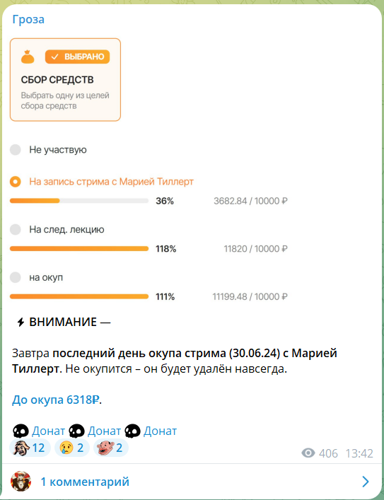 Стрим окупился, последний донатер забашлял 5.5К и попросил фото Тиллерт в купальнике, которое Коленька тут же отправил ему в личку. А значит будет больше баб на стримах и Коленьки-сутенёра.