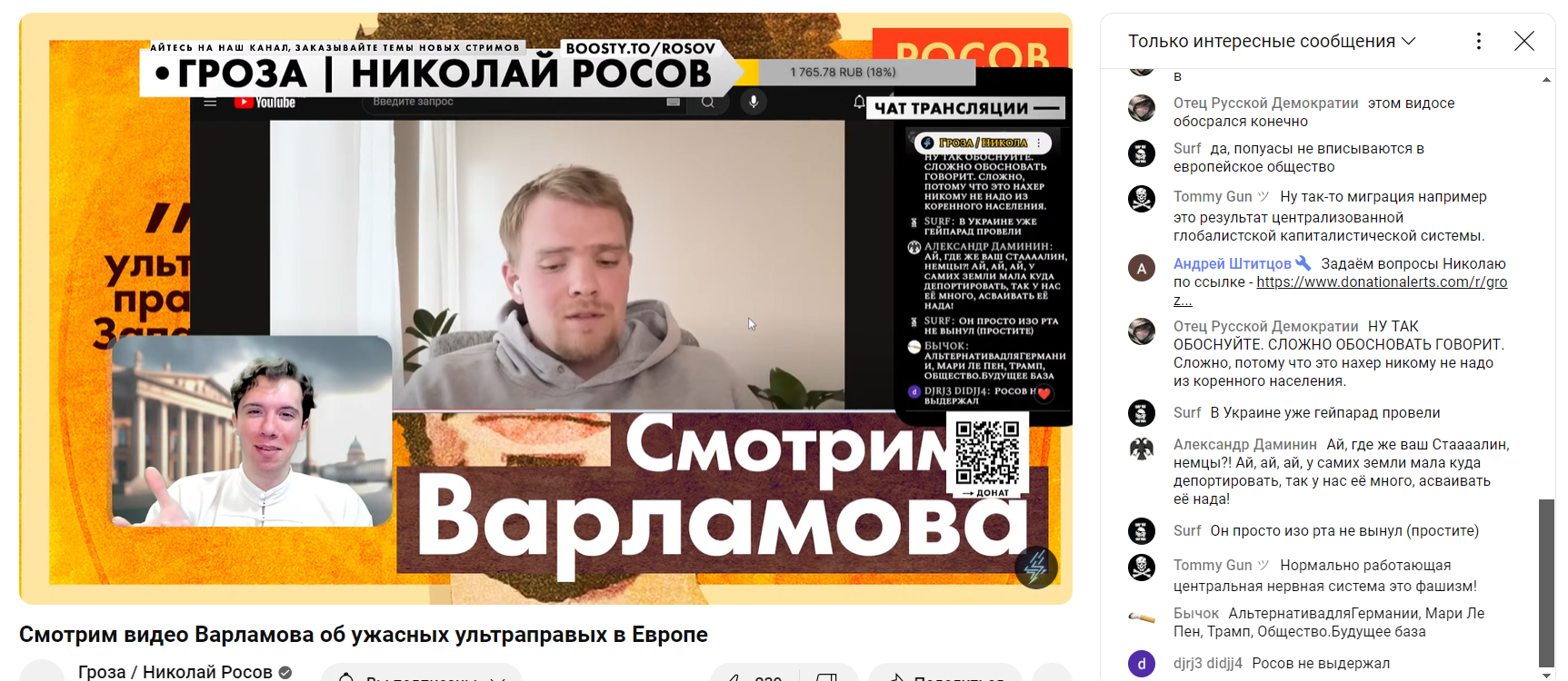 Росаны недавно переслушал стрим с философом Андреевым - понравилось https://www.youtube.com/watch?v=GylBuYgAw34 Колька правда, наверное, ждал, что гость будет как дед-сталинист срать постмодерн, и средневековье в плохом смысле, а получил оппозицию, что смотрелось оч занятно, помимо интересной темы. В конце еще добил про генетику и федеративность)