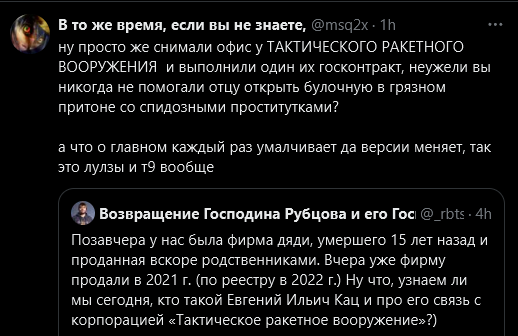 Один битки от апшечки скорее всего получает на развитие своего zми, у второго родственники на оборонку работали, а жена контракты от Альфы и Сбера получала.