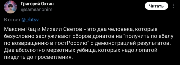 Ну и напоминаю, за создание секты sjw неонашистов, у которых единственная цель – война с Навальным, Кал и Смектов должны быть набутылены на пожизненное