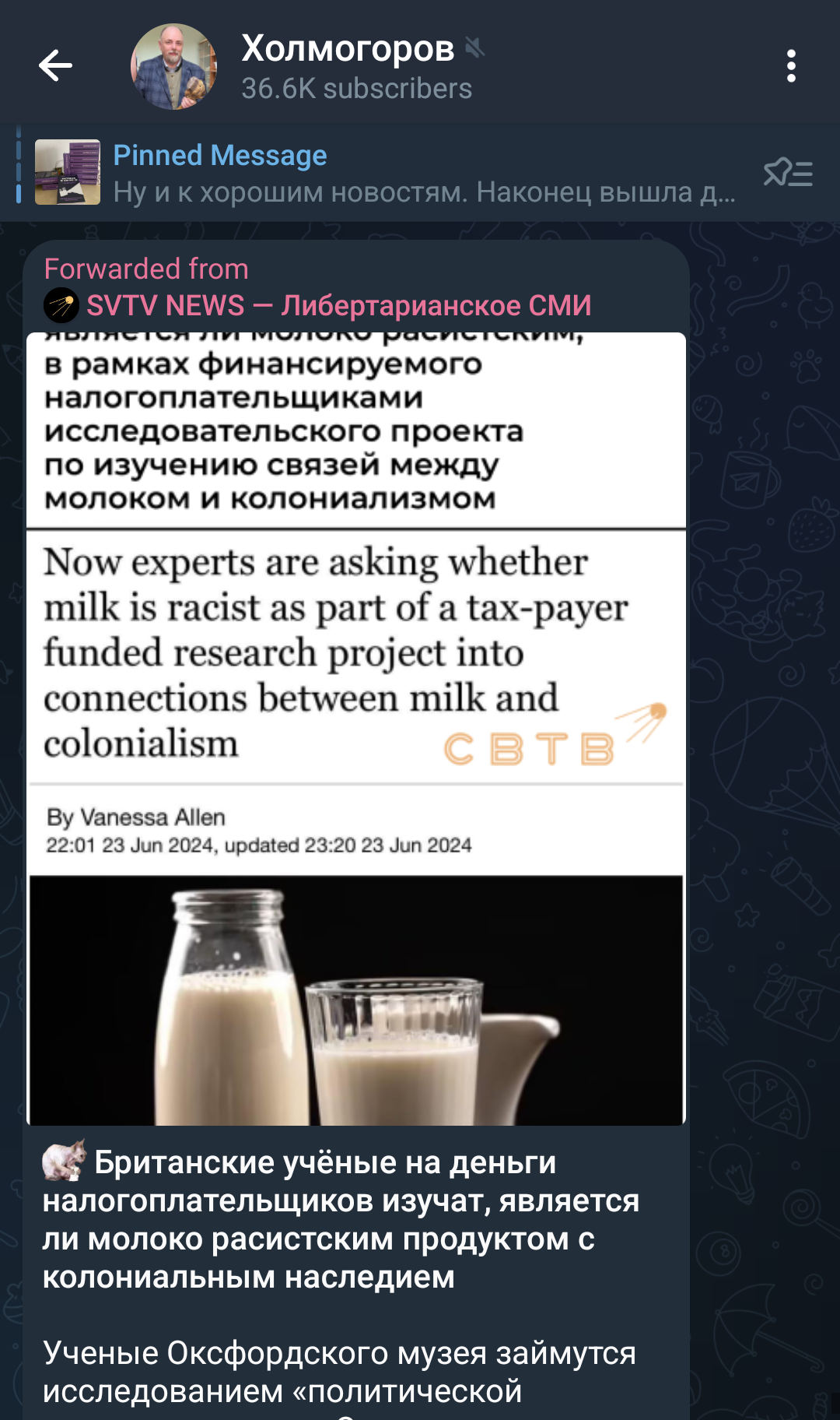 Блять "сми" педофила буквально неотличимо от кремлевской пропаганды. Постоянная борьба с Майклом Наки, трансгендерами трудовиками на олимпиаде, и рассказами как всу обстреляла очередной сарай. Это же блять противоречит самой сути либертарианства. Как можно создавать либертарианское сми, которое действует исключительно в интересах режима, которому должно противостоять. Это просто сюр.