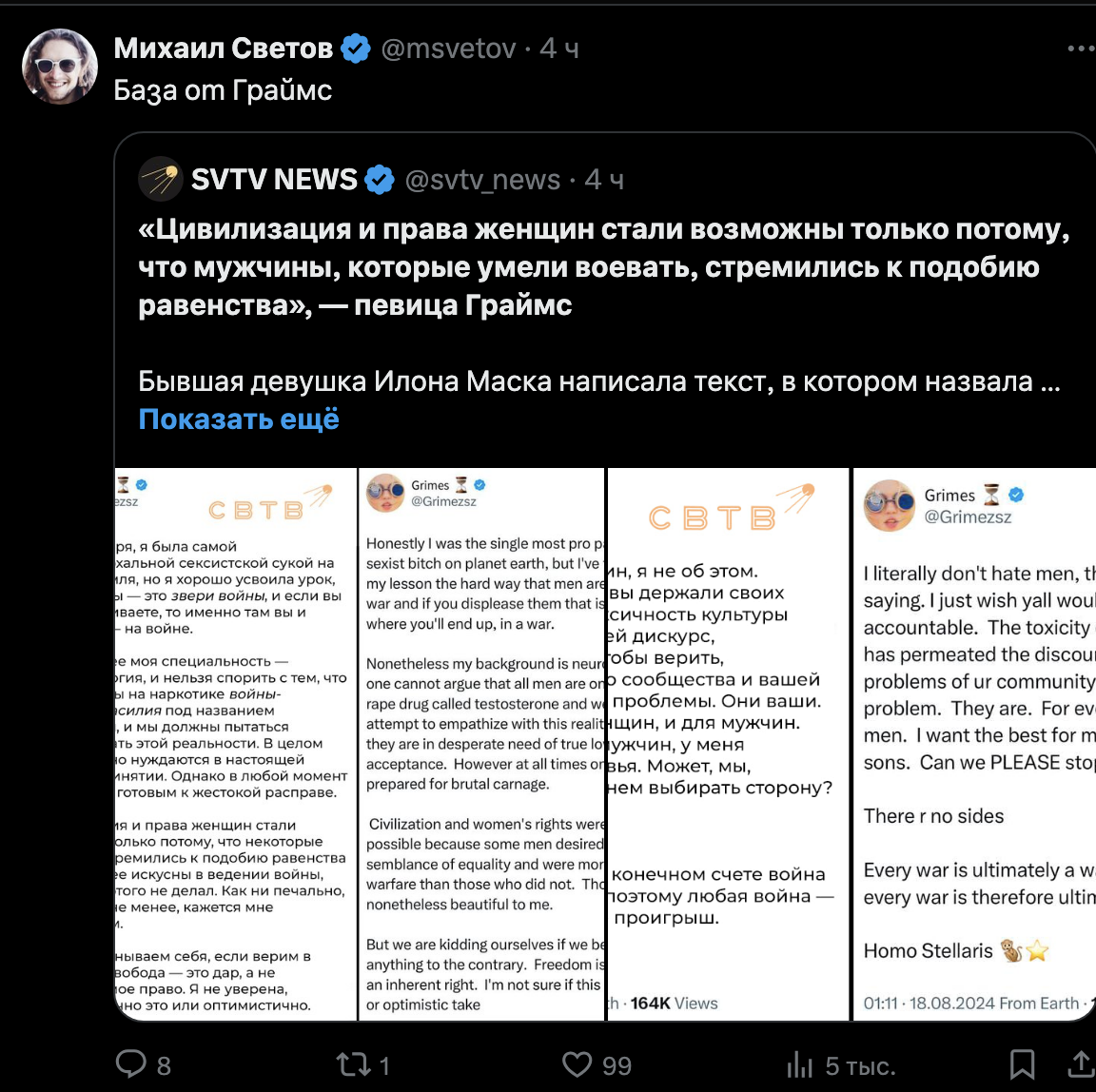 Тред забили дегроды и мрийные поуехи из РФ и Укры. Либертарианская солевая коммуна Тбилиси. Из-за того, что со Светой все понятно и ничего нового, вы тащите его обычную 20 летнюю тёлку. Срачи в тви СВТВ — вот для чего нужен Мишаня.