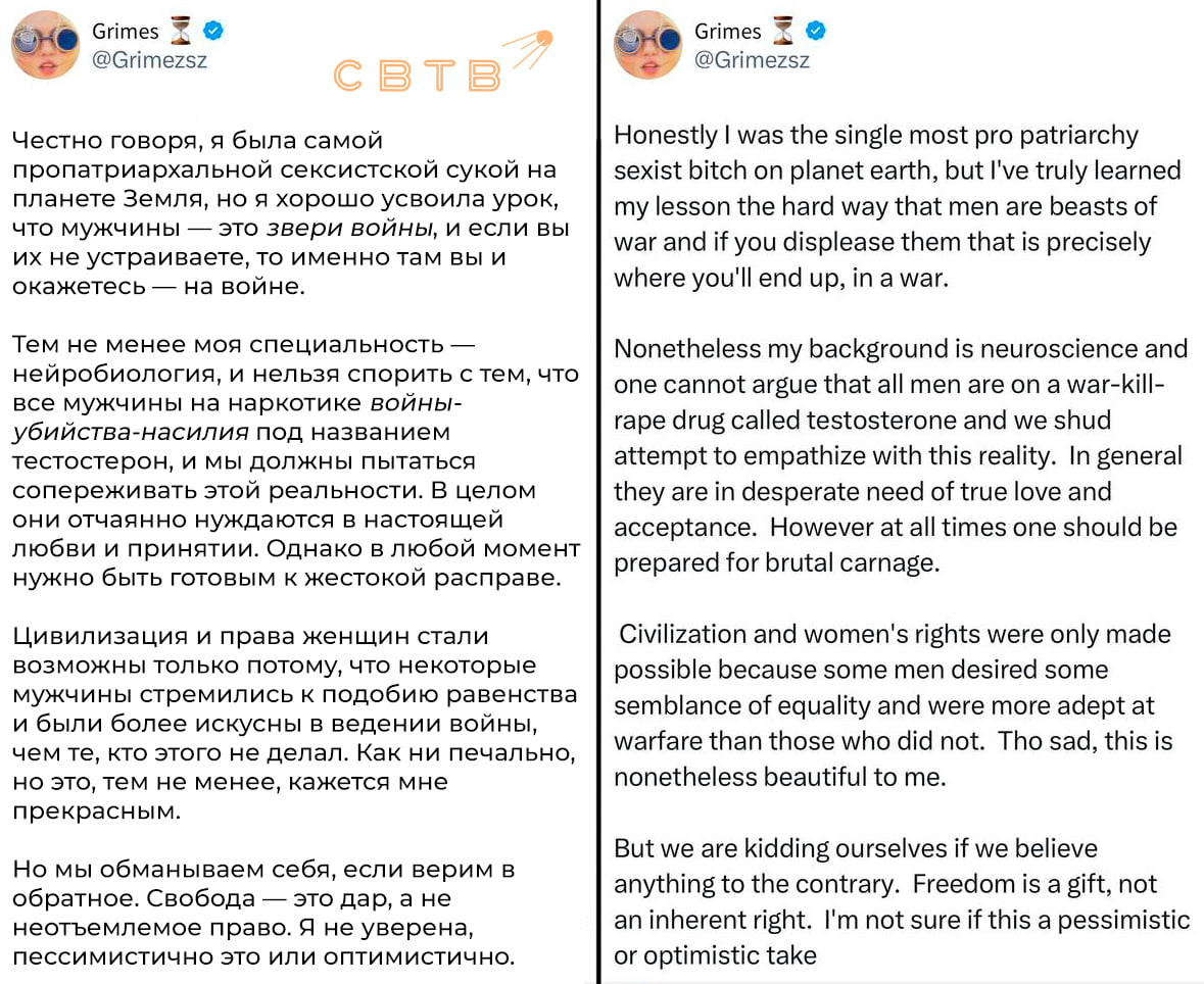 >>934954 >I've truly learned my lesson the hard way that men are the beasts of war Вот что за хуйню она несёт? Маск её из кожаного пулемёта расстрелял? Провёл успешную наступательную операцию ей в тыл? Какая нахуй война, она её максимум по тель-авизору видела.У меня такое ощущение, что у пендосов шиза у огромной части населения.