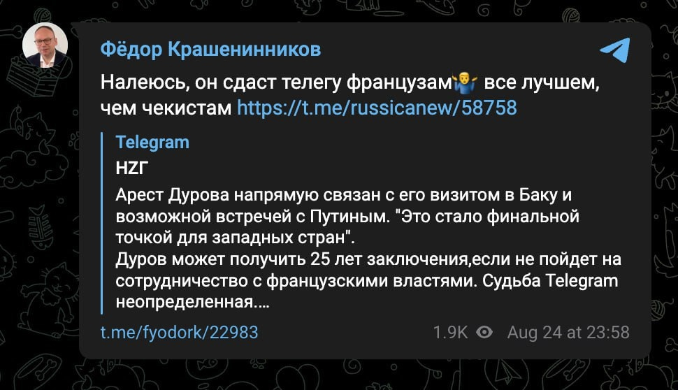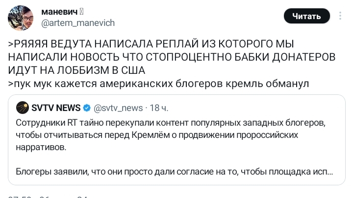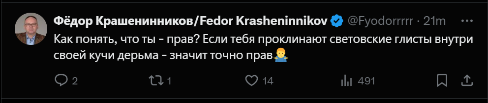 феноменальный уровень дискуссии, а комментарии в тг еще более шедевральные.