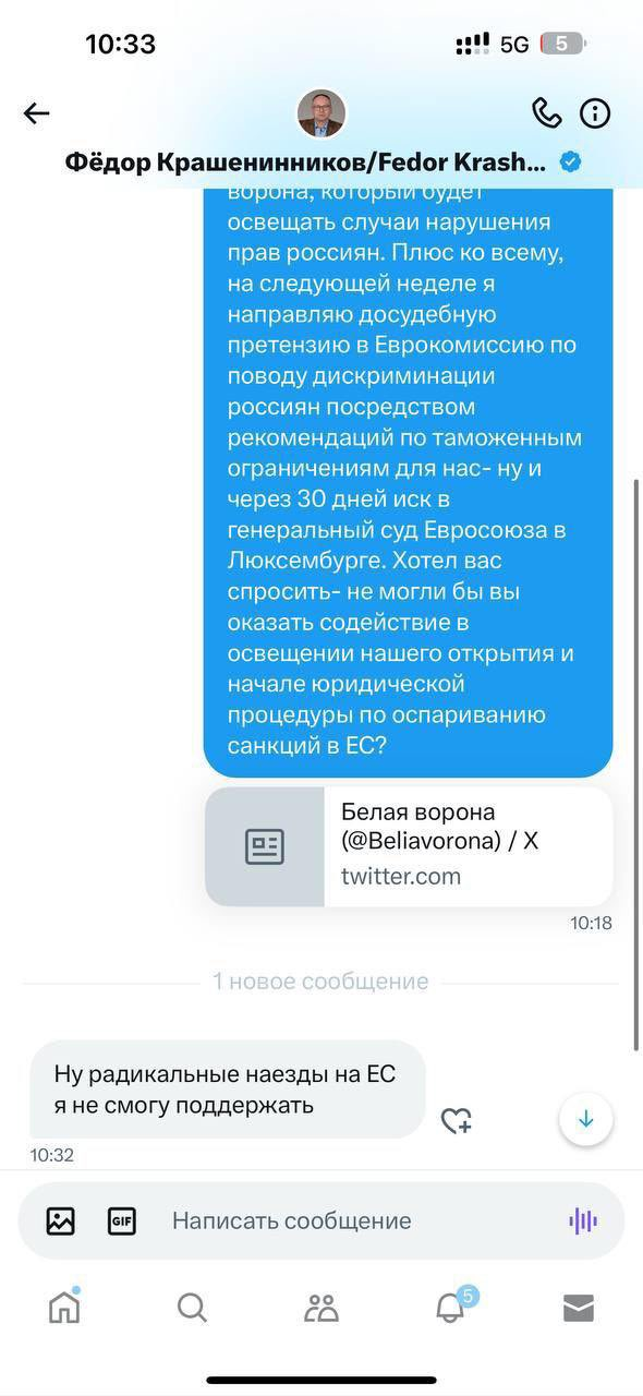 >>938169 Переписка нормальная, а подводка нет. Суть: Крашенников - я не буду качать тему, что ЕС и ЕП плохие, они наш донатер, плюс в ЕС И ЕП большинство депутатов вообще против русачков, даже таких как я, и они каждый раз при качании тыкают пальцем на меня, мол вот эта русня и та русня, всех нахуй блядь!