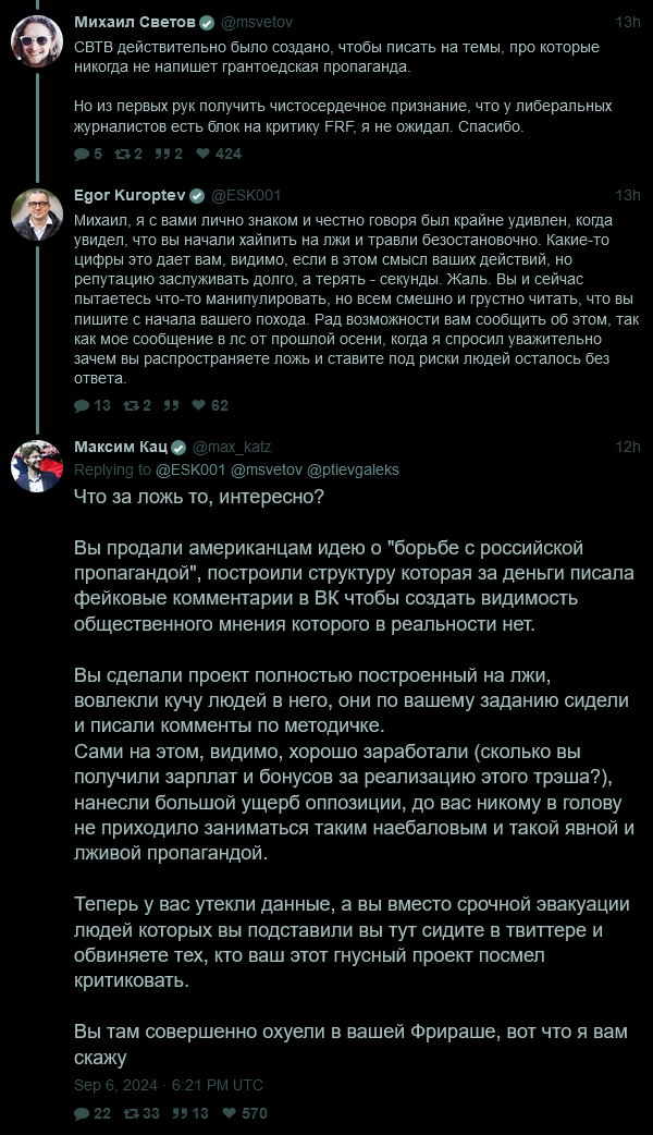 Ты обосрался по таймлайну. Сначала материалы получили фбкшники в июле, делали все это время полноценное расследование, фактчекали, и только позже чел источник слил остатки в рт, что и вбросили сразу неделю назад.