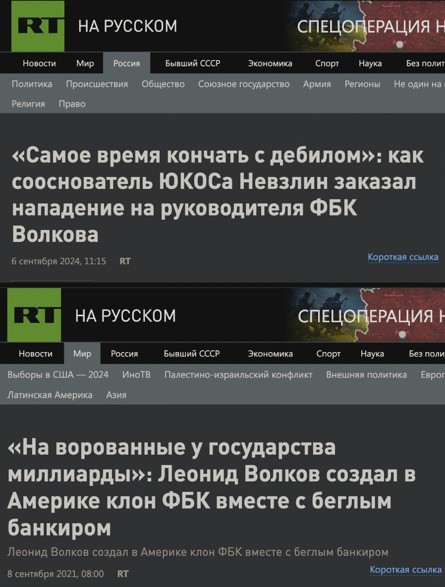 https://www.youtube.com/watch?v=7JvLMy4o51M ФБК: Невзлин, топ менеджер Газпрома и сотрудник Ходорковского (ближайший помощник) организовали нападение на Волкова и парочку еще сотрудников. Источник информации - сотрудник Ходорковского (который участвовал в организации нападений) взломал телефон Невзлина Pegasus (ага конечно он взял и взломал его сам, он не продается мимокрокам) и еще записал с ним аудио.