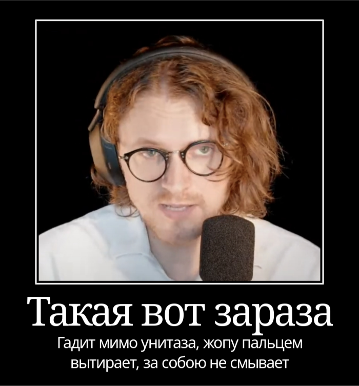 Эталонный неонашистик, перекрывающий обсеры настоящего олигарха русофоба Невзлина. Вот таких вот пынявых чмонек с насранными в голове шизо триггерами и взращивают с помощью конторских и невзлинских донатиков и сливов через падаль типа каца и педофила.