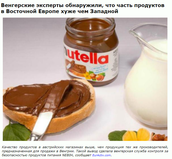 >>946654 >учитывая, что западные компании спецом в Восточную Европу завозили продукты хуже чем в западную Тыскозал.