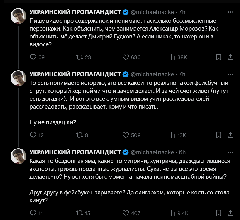 Предполагаю у Михаила есть когнитивное заболевание, он не в состоянии сформулировать мысль без повторения слов, путает окончания, буквы в словах. Есть желание покопать в этой области?