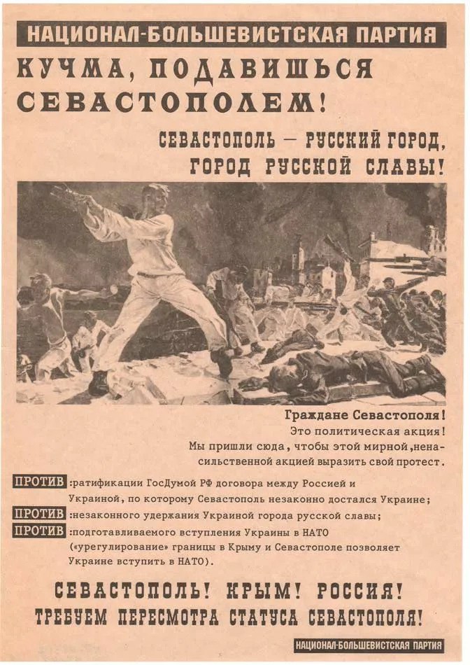 Но тогда, в 99 году, ровно 25 лет назад, возвращение Севастополя в Россию казалось ненаучной фантастикой. В России тогда царил полный ельцинизм. Что сам Ельцин станет скоро «я устал я ухожу» наверняка не знал и сам ЕБН. США и НАТО совсем недавно разбомбили Югославию, но в Москве, слегка посетовав, всё так же вовсю пресмыкались перед Западом, тужась «дружить» с мировым хищником. Представить, что спустя 25 лет один из президентов России станет разговаривать с НАТО языком передовиц из экстремистской газеты «Лимонка» – это казалось ещё фантастичнее и фантасмагоричнее, чем возвращение Севастополя.