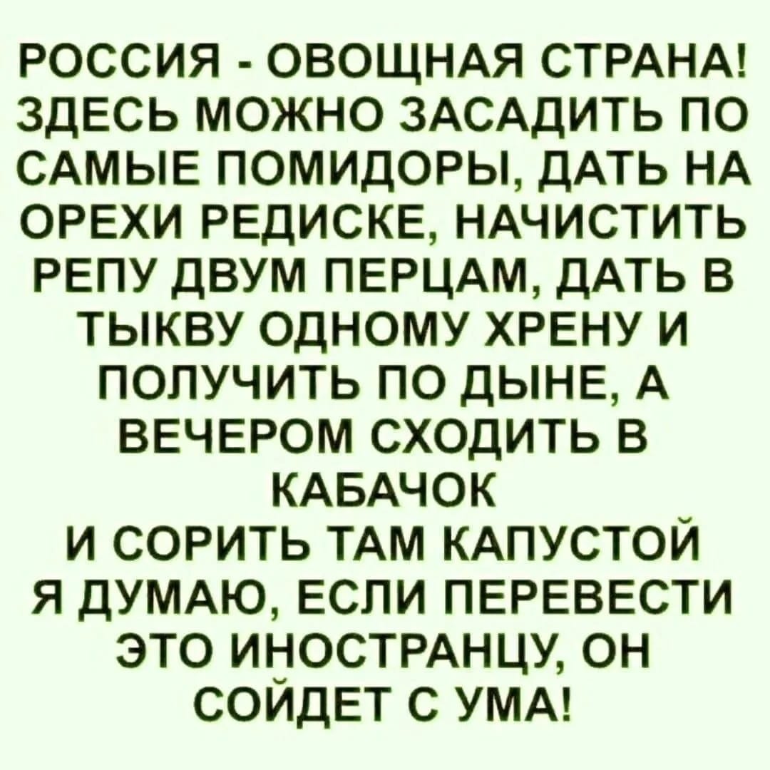>>936245 Я - патриот. Я воздух русский, Я землю русскую люблю, Я верю, что нигде на свете Второй такой не отыскать, Чтоб так пахнуло на рассвете, Чтоб дымный ветер на песках… И где ещё найдёшь такие Берёзы, как в моём краю! Я б сдох как пёс от ностальгии В любом кокосовом раю. Но мы ещё дойдём до Ганга, Но мы ещё умрём в боях, Чтоб от Японии до Англии Сияла Родина моя.
