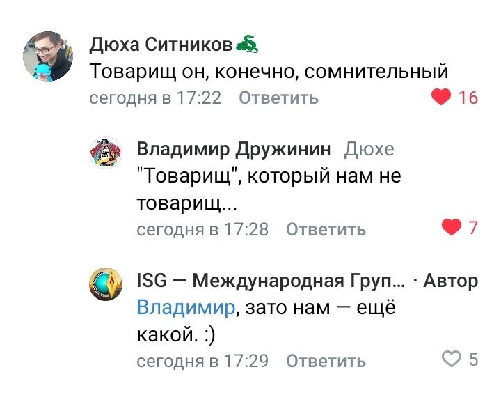 >>949220 Комолов держит фигу в кармане только в отношении доверчивых зрителей, а Майснер охотно снимает «охранительские» разведопросы с Жуковым, где аргументы как у Гоблина.