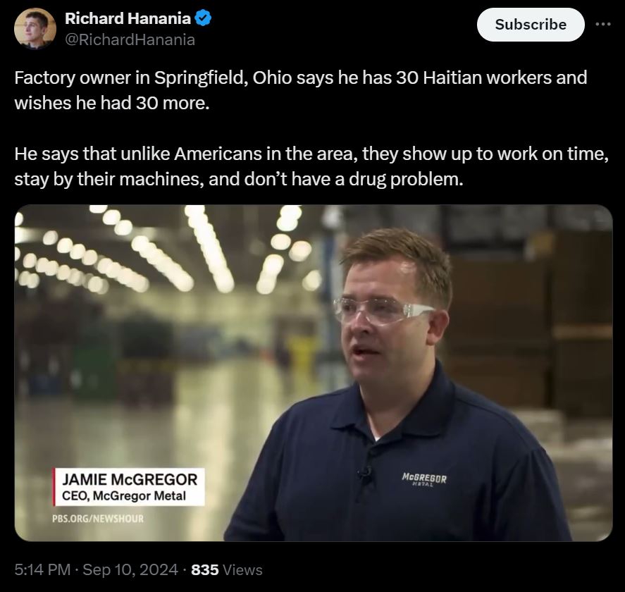 Вот как Харрис выиграет выборы - они завезут, уже завезли - пиздец в Чикаго, Нью Йорке, Денвере, и даже на родине Симпсонов Спрингфилде, мигрантов, а те проголосуют по несколько раз, попутно называя расистами тех, кто будет спрашивать у них удостоверение личности. Меньшевики провели самую тихую революцию в истории, мы медленно сварили лягушку белого капиталиста угнетателя, тупые большевики.