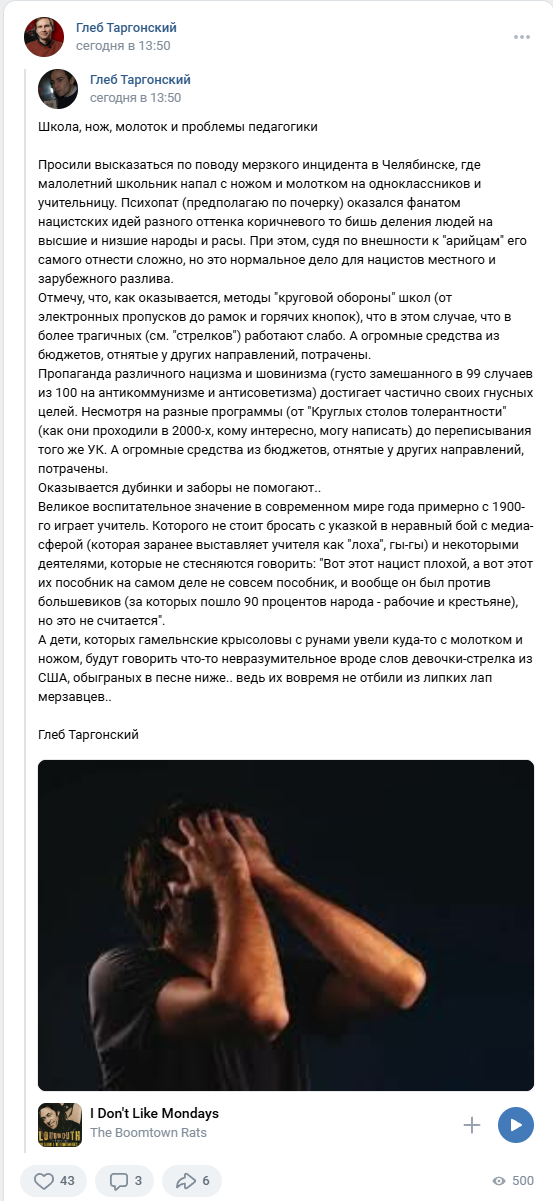 Свежие треки Кинчева хорошо подошли бы как контент пабликов полковника Квачкова.