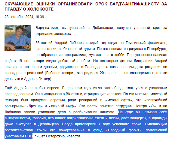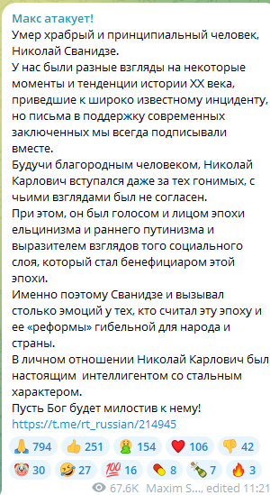 https://youtu.be/IG6pEW9PwTk?si=vIvwF752OKWtTTVY В этом почти двухчасовом видео мы собрали позиции и высказывания об СВО большей части так называемой «левой общественности» в России. Конечно, список не исчерпывающий: в него не вошли десятки небольших левацких пабликов, и, наверное, ещё с десяток более-менее видных медийных деятелей, как та же Виктория Гарсия Берналь, но всё-таки, на текущий момент это единственное видео такого формата, что нам попадалось в «левой блогосфере». Запасайтесь попкорном, успокоительным и приятного вам просмотра!
