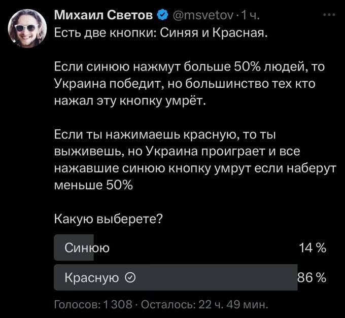 >>949537 ЛОЛ Что? Это любимая тема всей госпропаганды. Блогеры уже 3 года не дают Соловьеву рассказывать, что СВО идет по плану и даже с опережением графика.