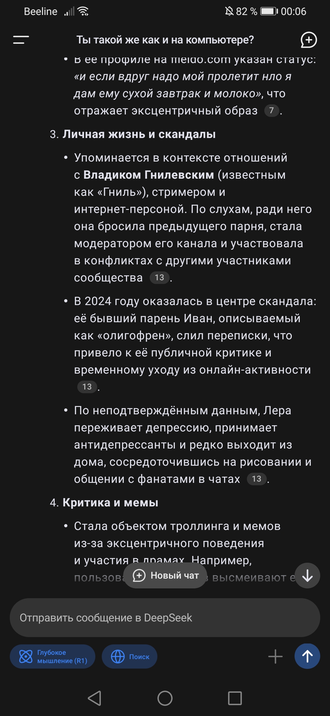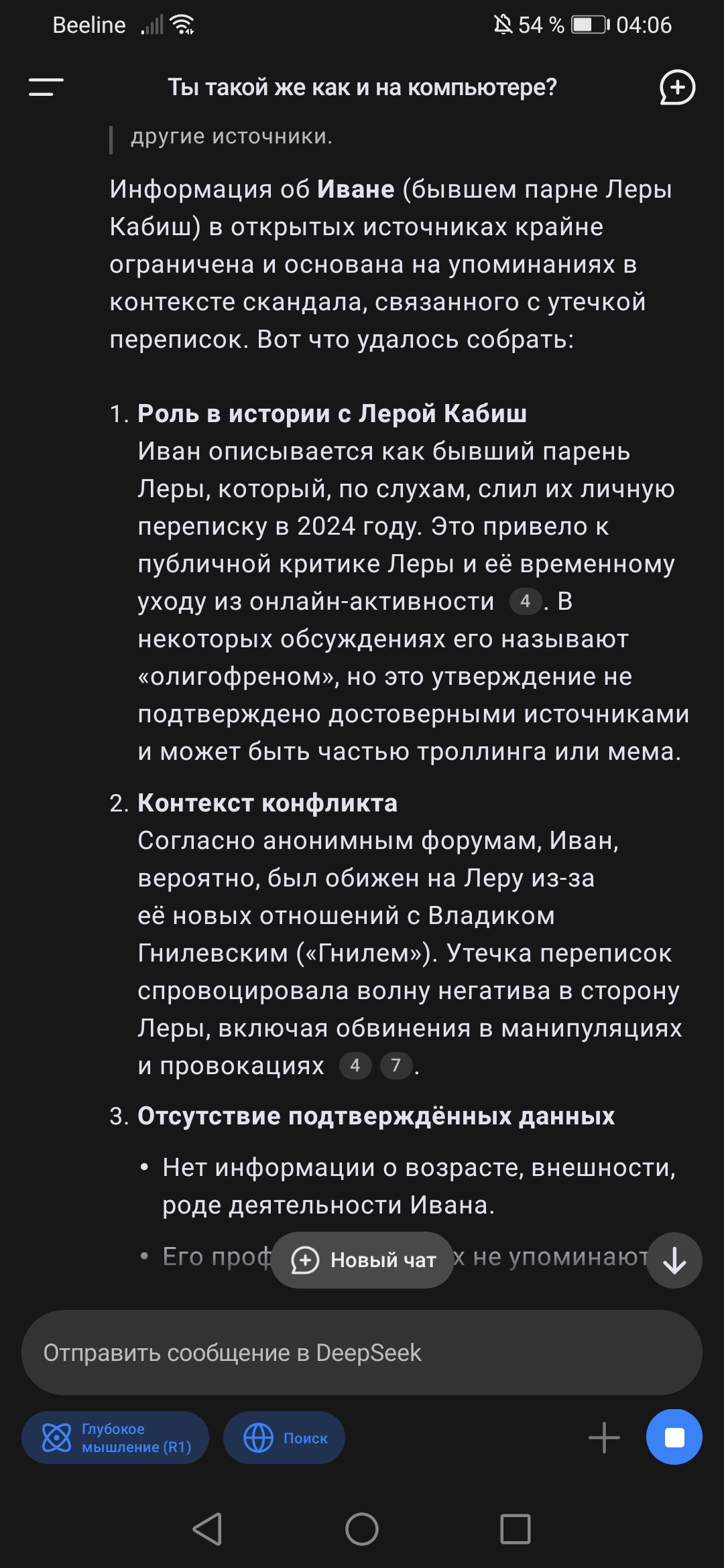 Воть, если хочешь, то можешь про себя что-нибудь хорошее написать, и это будет в дипсике, а то у тебя иван бывший парень, но а в остальном полная правда, ну а я пожалуй уйду в мир иной, пишу тут, потому что фейковый акк не получилось создать😞 С любовью, Толя😋