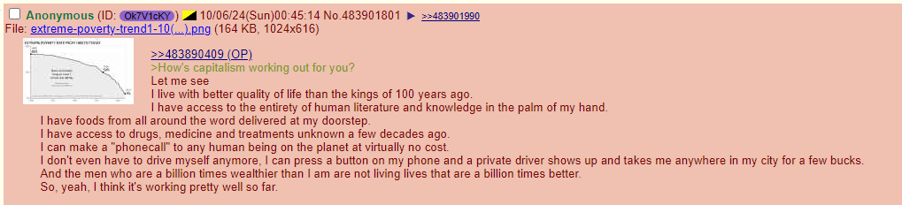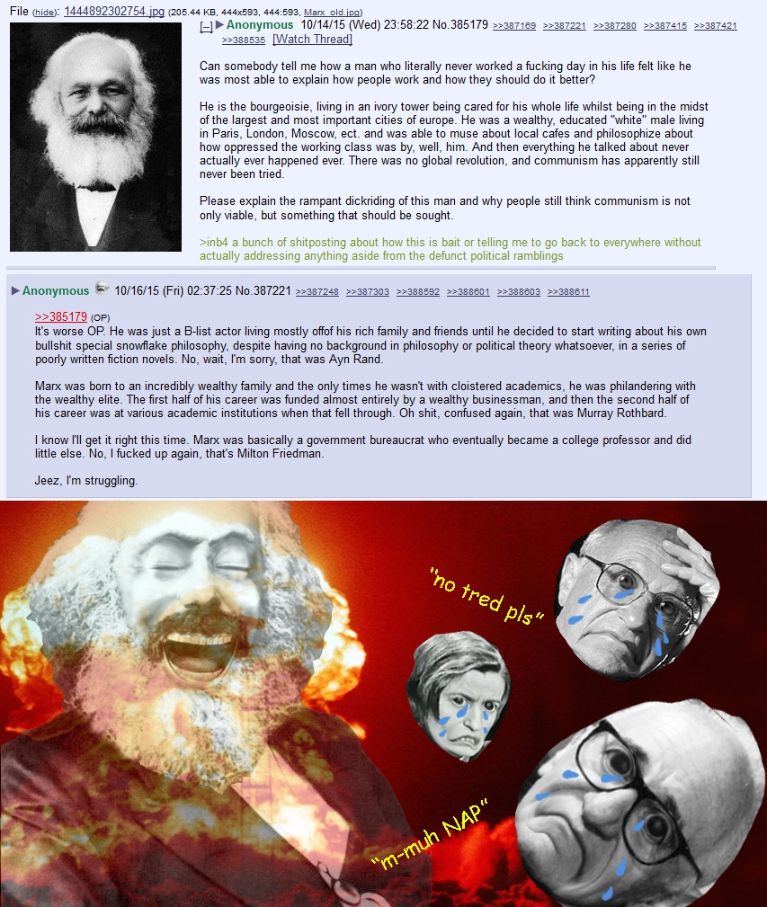 >>960926 >>961012 Ясно. Пикрил. >>960927 >капитализма Это что такое? Какая-то формация? А она существует потому что так сказал еврей из Лондона? Для начала свою формационную шизу нужно исторически подтвердить, а она спотыкается об индейцев северной америки у которых рабов не было, как же так? Такой феномен игнорируется, видать он очень неудобен, он мешает, ведь как так, рабовладельческого строя не было, как так индейцы не испытали феодализм, приплыли европейцы и сразу начался капитализм. Это проблемнее чем так называемая азиатская модель. Как решать будем? Предлагаю четыре варианта - агрессивно молчать, оскорбить, откопать незначительный или полумифический факт и тыкать в него, уйти в демагогию диамата. :3 >частной собственности Ого, а разницу между частной и личной собственностью ты мне сейчас расскажешь? Кстати государственная собственность на средства производства она какой характер носит, общественный, частный или личный? Ещё бы хотелось цитату из Маркса в оригинале, где чётко прописаны эти различия. :3