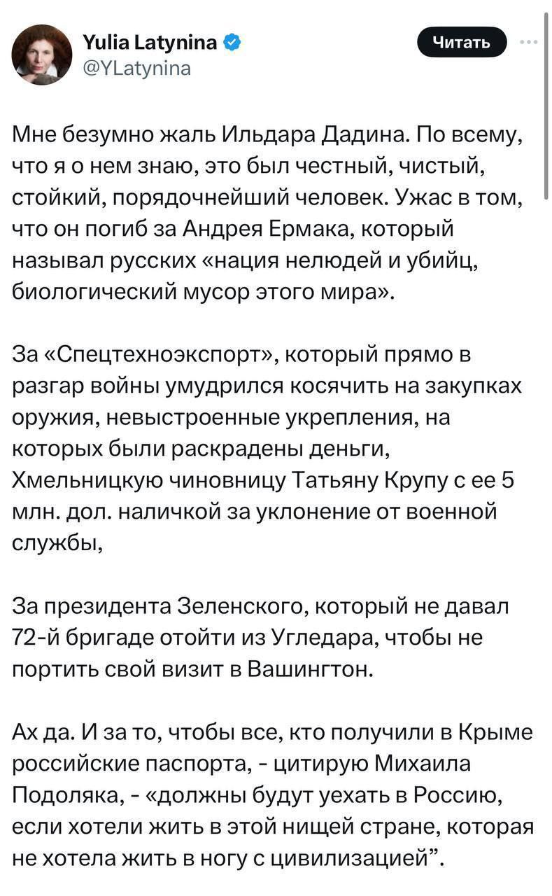 Идейный навальнист Ильдар Дадин, бежавший из России в 2022 году и воевавший за ВСУ, ликвидирован русскими бойцами на Харьковском направлении. Закономерный конец этого заукраинского боевика либералы восприняли как удар в самое сердце — в 2015 году Дадин стал первым, кого осудили по статье о «неоднократном нарушении правил проведения митинга». В кругах предателей она стала называться «дадинской», поэтому среди заукраинцев этот представитель чествуется особенно.