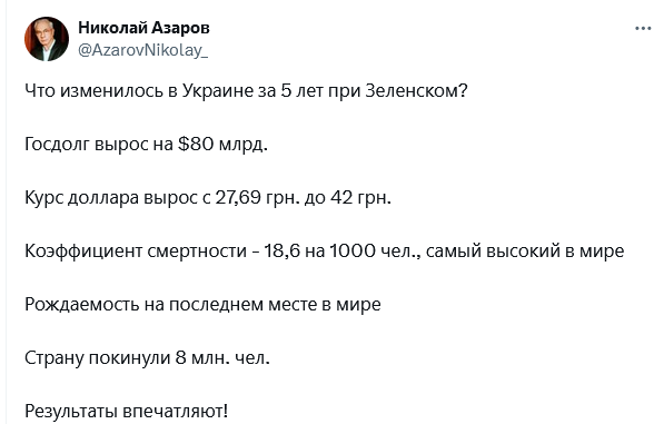 При этом, Майк признал, что в Америке бОльшая часть населения не верит, что Зеленский может выиграть, а многие республиканцы выступают против помощи Украине. «По их мнению украинское руководство сломано, оно коррумпировано. Зачем нам тратить там деньги американских налогоплательщиков? США не готовы позволить Украине делать то, что необходимо для достижения победы»