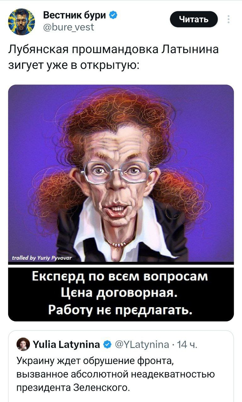 >>952092 Так Мизулина младшая очевидная ловушка. Лицо имеет следы типичных феминизирующих операций, как и фигура (ввиду того что СНГ трансухам операции делали по рекомендациям 3,5 врача, они выглядят как клоны с конвейера), да и не естественный голосок свидетельствующий то ли не удачных тренировках по феминизации голоса то ли не удачной операции на голосовых связках. Плюс провалы в биографии, словно лет до 27 никакой девушки Мизулиной не существовало физически и юридически. Просто я хуею с России, тут очевидный трансовый транс учит вас духовным скрепам, а вам похуй. Такое чувство если в Россию по какой то причине переедет Наталья Вин и будет учить россиян духовным скрепам, всем будет похуй что это делает ЛГБТ-сатанист. Что с вами блядь не так? Ладно вы угорели по сути Ильинском православному нацизму, но вас учит жизни и духовным ценностям с русским миром то еврей-гомик, то трансуха, то кавказец. Лидером националистов являются то еврей из Казахстана, то прости Боже Юниман который даже фамилию как Сурков поменять не удосужился. То вас «левым ценностям» приучают беспринципные продажные буржуа, правда вместо левой идеи кормят вас то просто нацистками дерьмом, то эзотерически-фашисткой хуйней. Такое чувство что даже массовые расстрелы такой социум не спасут от коллективной шизофрении и терпильности. Просто плешивый дед живущий в своём манямире внутри бункера адекватнее тех подданных которыми он управляет. Такое чувство Путин хоть как то держит в узде весь хтнонический ужас живущий у жителей России, которые дай им демократию изберут чеченскую транс женщину которая будет стороить Империю Халифат дать пососалку с обязательной гомоеблей по субботам с существующей уголовной статьей за мужеложство наказывающейся смертной казнью и никто не пикнет что живет в стране взаимоисключающем параграфе.