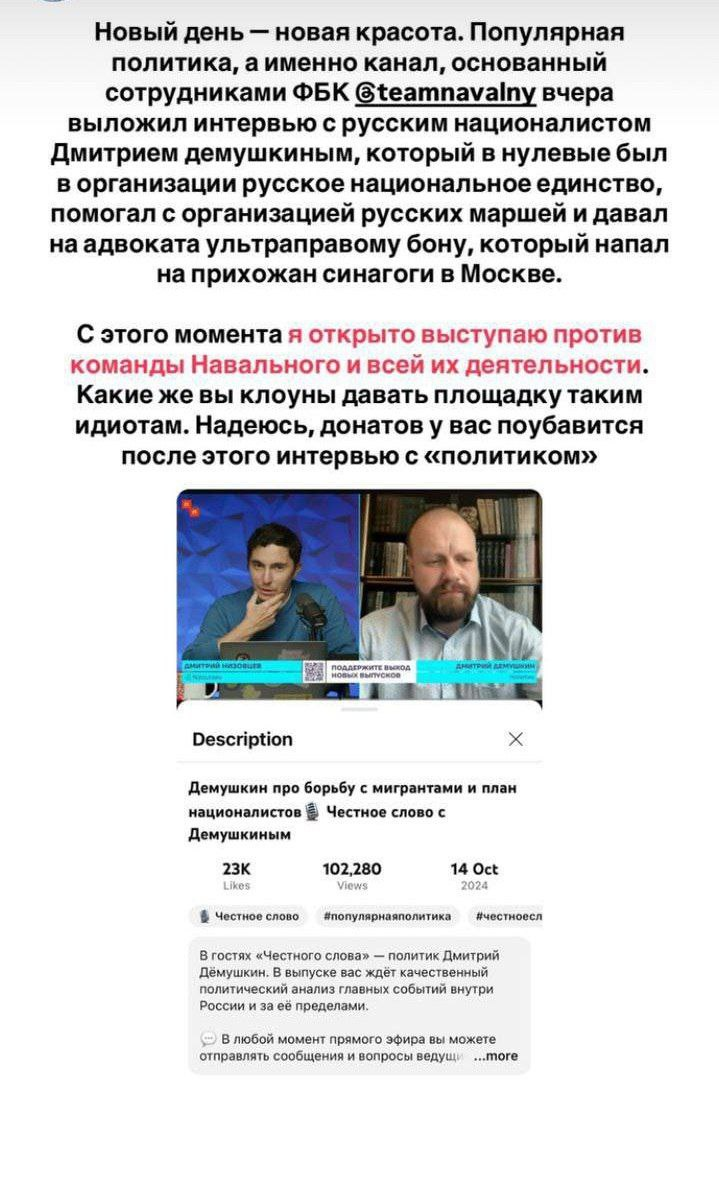 >>952459 >Идейный навальнист Это уже диагноз. Для самого жулика и вора Алексея Навального вся эта канитель была просто бизнесом, а этот, епта, идейный. Считай, бесплатно деньги Навальному фармил.
