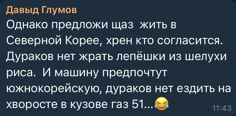 >>960964 >>960967 Кто-то может неиронично объяснить нахуя? Я могу понять когда Блистательное Солнце Ким меняет снаряды на [засекречено, но твердо и четко не влияет на экономию РФ]. Но нахуя поддерживать челиков которые вместе со всем цивилизованным миром вводили против тебя санкции?