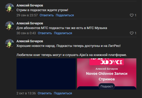 >>954353 побирается пиздец, ручной подсос рекламит и сует его во все сервисы. это какое чсв нужно иметь, чтобы свои стримы петушиные записанные в mp3 продавать как книги? Озон и тот стесняется свои книги продавать, а он их нахуячил кубометры