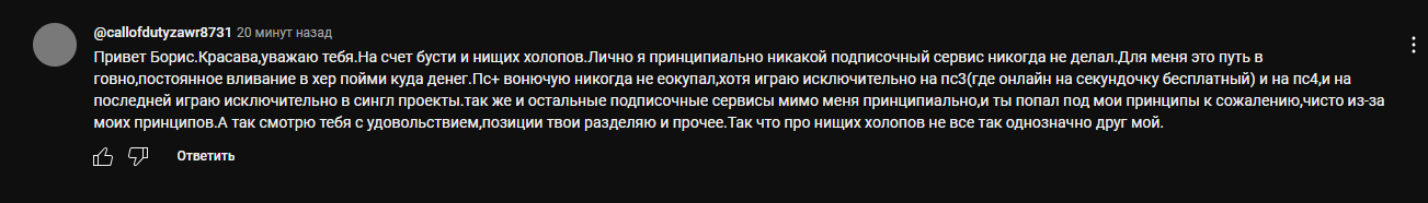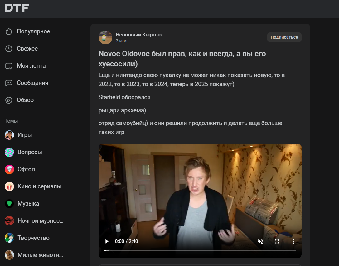 Кстати нет у него на каналах никакого shadow бана. Видосы выходят в рекомендациях прекрасно с обеих его каналов. Просто контент пенный унылый по максимуму, визги тряска и пересказ паст с реддита. Про бан и скручивание просмотров это он сам вбрасывал, оправдываясь почему не растет аудитория и нет просмотров.