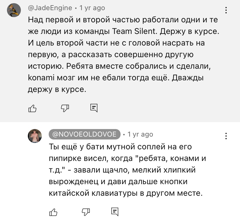 Пенкин ебанулся? Вместо прохождения сойхилл2 ремейк лично и его обозревания, он просто берёт чужой обзор и делает обзор на обзор. И газонюхи ютубные реально такой кал жрут? Пиздос. Раньше хотя бы делал вид обзора, смотря англоязычных ютуберов, а щас вообще обленился, педик ебучий. Да такой калтент даже 100р на бусти не стоит, пиздос. Пена, ты - великовозрастной дегенерат, каких только поискать.