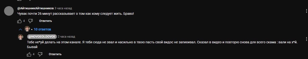 Чисто та же самая база что и в треде была, под подобными комментария видны агрессивные нападки фриков начинающихся с оскорблений. Пенкин реально собрал вокруг себя таких же душевнобольных и агрессивныных газонюхов, правда эти болезненные и двух слов связать не могут.