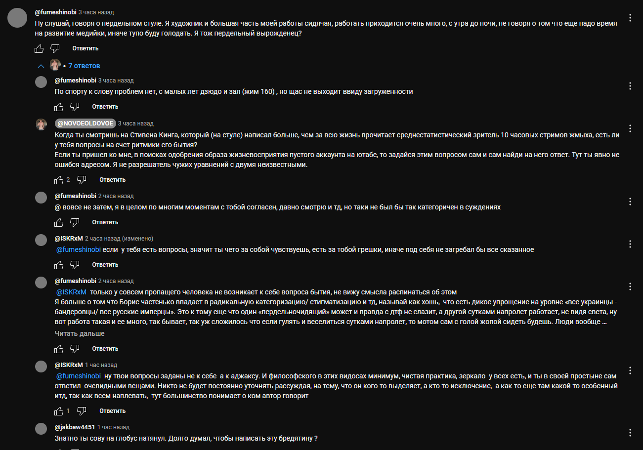 Только что написал коммент под роликом величайшего бурноволосатого пенного гиганта. Через 5 минут потёр. Вот это да, сидит на пердельном диване за китайским ноутом без жизни, мониторит, что о нём в интернете пишут. Вот это да, учитесь как жить, вырожденцы, траву потрогайте ага.
