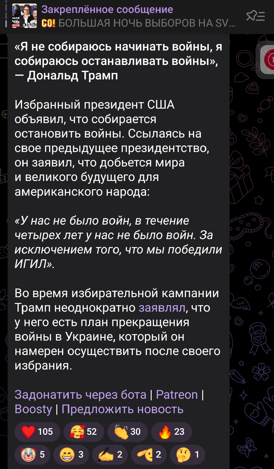 Минутка хорошей памяти: на либертарианском конвенте в США Дональд Трамп обещал помиловать Росса Ульбрихта. Это напомню, такой чувак, который создал даркнет площадку Silkroad, а затем его осудили на 100500 лет. Ни за что, короче. Помиловать обещал в первый день (в смысле в первый день после инаугурации, не сегодня). День предстоит насыщенный: войну в Украине он обещал прекратить в те же первые 24 часа.