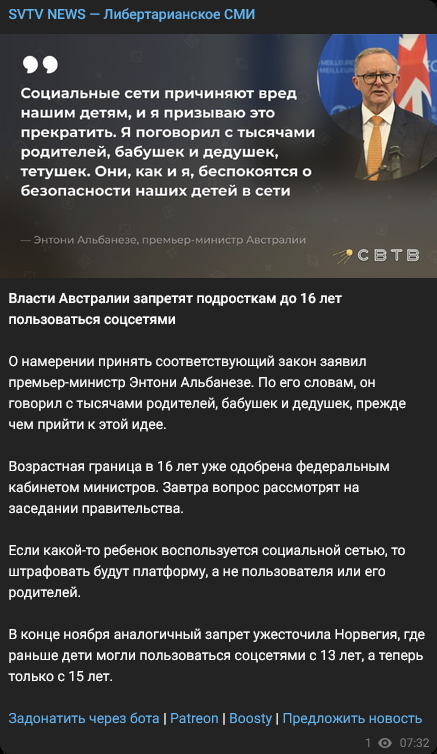 >>963014 Австралия давно в гулаг катится. "По многочисленным просьбам трудящихся" - прям как в СССР. А были бы яйца - вынесли этот закон на общенародный референдум. Но тут вам не Швейцария, а колония Бритахи