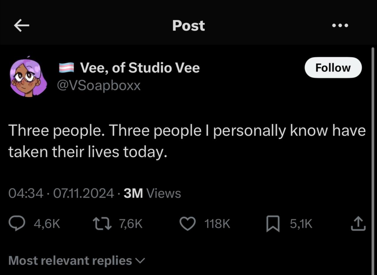 Гляжу как из американских либералов и их русских симпатизантов полился дистиллированный социальный расизм: дескать, Трампа выбрали немытые косматые реднеки, а все образованные горожане с хорошими лицами голосовали за нашу девочку (это примерно так и есть: больше выпускников колледжей были за Харрис). Тот забавный случай, когда люди даже не понимают, что именно за такие приколы их и не любят.