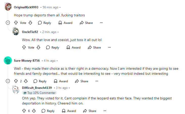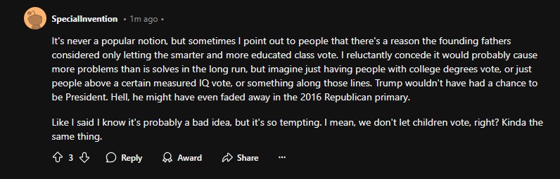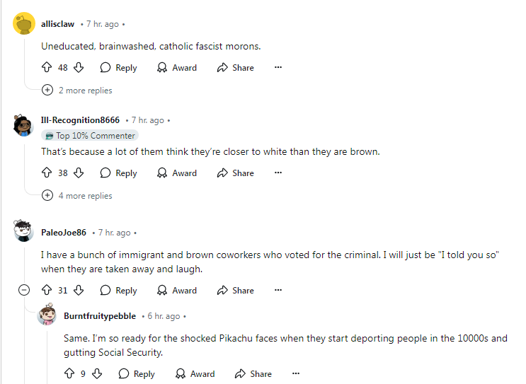 Почему в пиндосии люди такие? Сначала прикидываются милыми прогрессивными человеколюбами, но как только что-то идет не так как им хочется, так сразу вылезает черепомерство с неправильными людьми, голосующими неправильно, а вот я за все хорошее против всего плохого сейчас расскажу как надо.