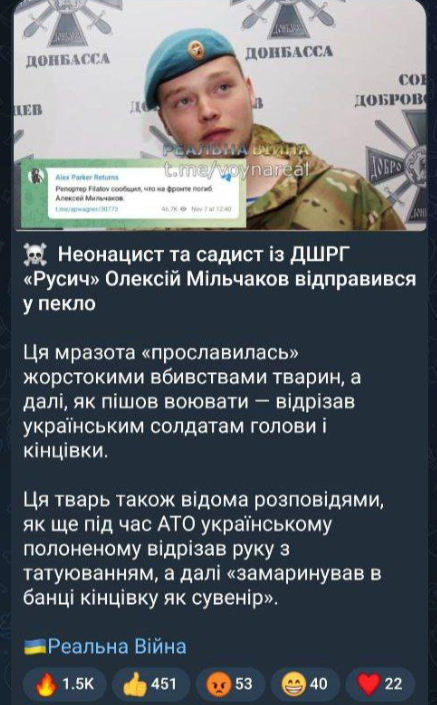 Я на связи с нашими Воинами , которые реально бьются с врагом. У пехотинцев, на передовой, одна мечта, не перемога, а шоб им оторвало ногу по колену, и эта мечта у «Героїв яки ще не вмерли»….