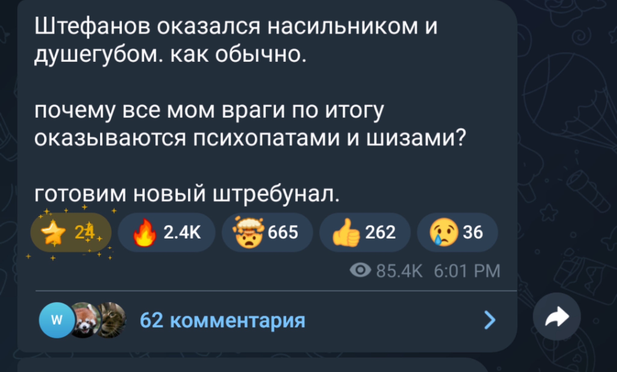 >тут сказано в контексте мошенничества Штребуха похуй на лысеющего додика. Мы Таргонского обсуждали