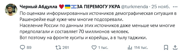 В ЗСУ, сформировалась каста мародеров, от блатных, бухающих каждый день в ресторанах и требующих скидку, мол у меня Убд, до генералов конвертирующие сотни тысяч долларов в крипту…