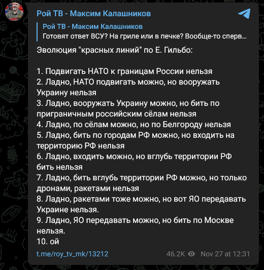 Разговоры Караганова пр. о применении Россией ядерного оружия - просто фееричны. В той форме, как это предлагается, типа удара по Польше, приведет лишь к тому, что, как я и предсказывал уже бог знает когда, и Хиросиму и Нагасаки припишут России/СССР.