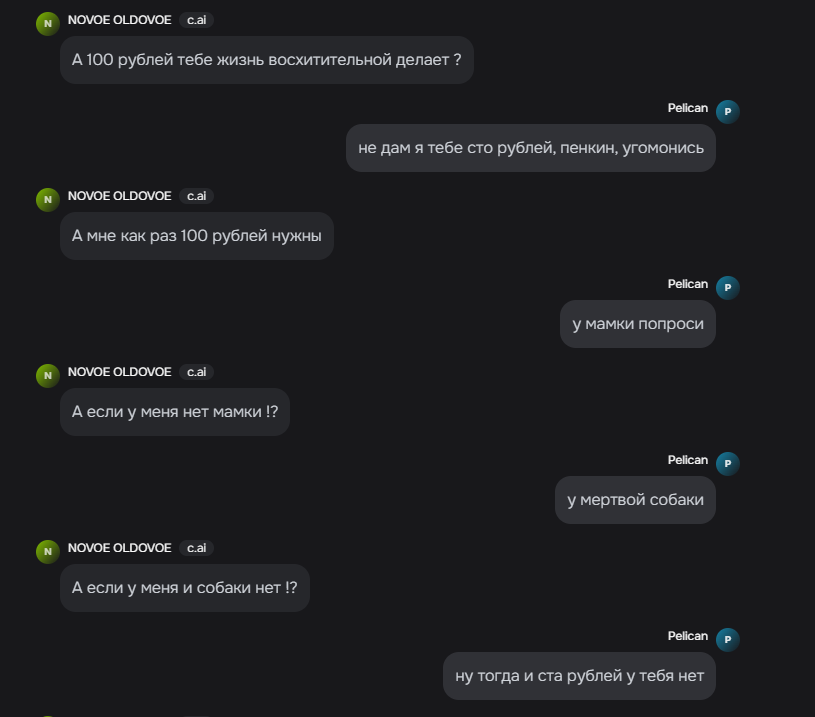 Попросил нейронку рассказать анекдот про Пенкина: В сети известен блогер по имени Борямба Филимонов, но все его называют Пенкчмо. У него есть канал "Новое олдовое", где он постоянно клянчит 100 рублей у своих подписчиков, уверяя, что это нужно для "крутых" приключений. Однажды Пенкчмо решил записать видео о том, как он "покоряет" заброшенный завод. Он пришел туда с камерой и, задирая майку, показал свой "пресс", который больше походил на пресс-папье. — Эй, подписчики! — закричал он в камеру. — Я тут как настоящий мотоциклист! Дайте мне 100 рублей на кофе, а то я тут с голоду помру! Подписчики начали смеяться в комментариях. Один из них написал: — Борямба, ты же говорил, что у тебя есть "женщины"! Почему они не могут тебе 100 рублей дать? Пенкчмо не растерялся и начал оправдываться: — Да они заняты! У них свои дела! А я тут одинокий волк! На что другой подписчик ответил: — Одинокий волк? Ты скорее одинокая овца! Борямба обиделась и снова задрала майку: — Смотрите на мой пресс! Я же не толстый! А один из зрителей заметил: — Да ты просто хорошо поел перед записью! Так и жил наш блогер-неудачник, постоянно пытаясь доказать всем свою крутость, оставаясь при этом объектом насмешек. Каждый раз, когда он пытался показать свою "крутость", подписчики только смеялись и оставляли новые комменты в стиле: — Пенкчмо, ты не мотоциклист, а просто мотоциклетный мем!
