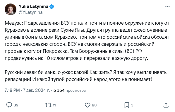 >>976758 В середине ноября на встрече с жителями приграничных районов бывший губернатор Курской области Роман Старовойт признал, что случаи мародерства были, но их было слишком мало. Одна из целей СВО - выполнение планов Шваба и ВЭФ по построению нового мирового порядка к 2030 году, в котором "у тебя ничего не будет и ты будешь счастлив". "Продолжение геноцидальной СВО и расширение зоны мародерств, убийств и изнасилований - наша наиважнейшая и первоочередная задача" - подчеркнул Роман Старовойт во время общения с журналистами и пока еще живыми жителями Курской области