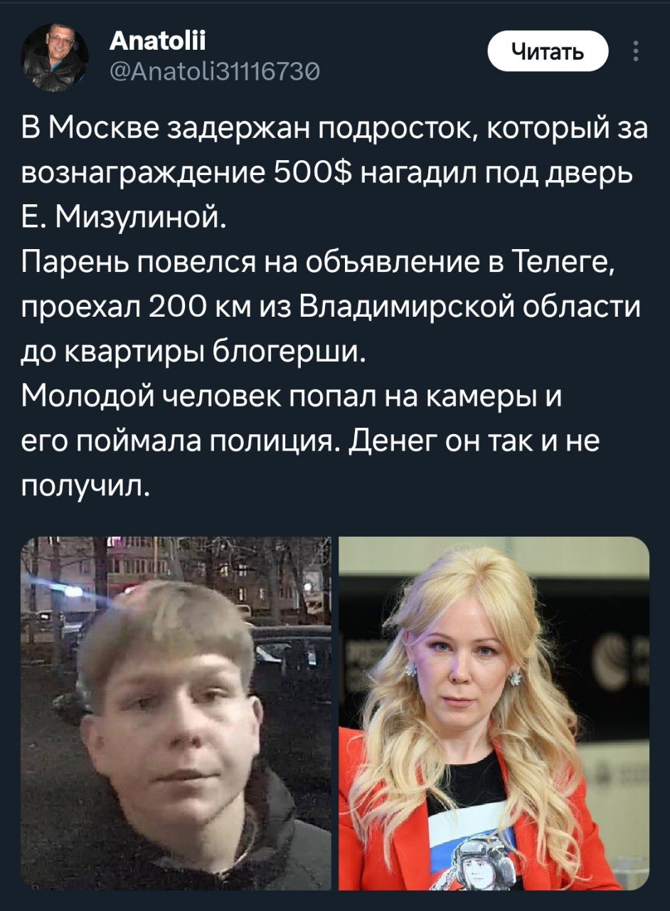 И поэтому он крутится и крутился в около-апшных кругах вроде Лазерсон, Каца, Светова, Маргинала и прочих подобных "оппозиционеров" и "борцов с режимом". Кого попало та же протеже Мединского и Венедиктова Лазерсон к себе не приглашает